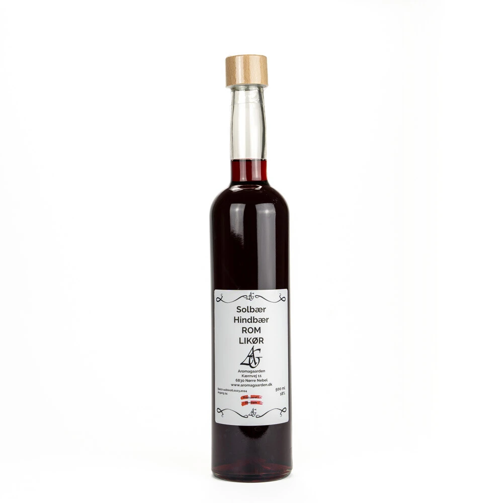 Aromagaardens Likør med naturlig smag af Solbær - Hindbær - Rom.